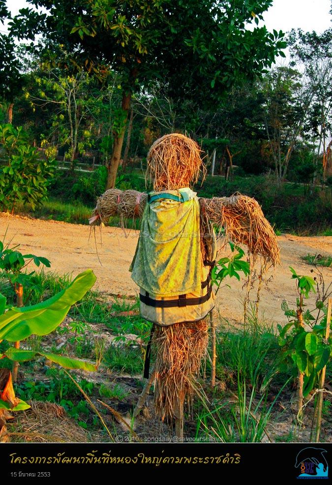 ทุ่งนาในศูนย์ ต้นข้าวยืนต้นเขียวขจี..... หุ่นไล่กา....ที่ไม่มีกาจะให้ไล่....