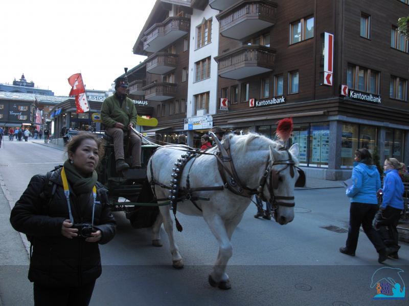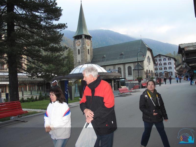 ....วันที่ 4 ของการตลุย คือ เมือง Zermatt และยอดเขา Matterhorn .....เมือง Zermatt เป็นเมืองท่องเที่ยวที่มีชื่อเสียงเมื่อประมาณ 200 ปี เป็นเมืองปลอดมลพิษ ตั้งอยู่เชิงเขา Matterhorn ยอดเขาสัญลักษณ์ของswiss นักท่องเที่ยวที่ขับรถมาจะต้องจอดรถไว้ที่เมือง Taํํsch หรือ Visp แล้วนั่งรถไฟต่อเพื่อมายัง เมือง Zermatt จะมีรถ Taxi ไฟฟ้า และรถม้าไว้บริการนักท่องเที่ยว ทำให้เมืองแห่งนี้คงมีอากาศที่สดชื่น ปราศจากมลพิษอยู่ตลอดไป