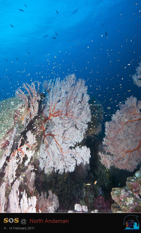 หลังการปล่อยม้าน้ำและตรวจความเรียบร้อยแล้ว ยังพอมีเวลาให้เราสำรวจบริเวณรอบๆกองหิน... เราสังเกตเห็นว่า ด้านเหนือของกองหินตาชัยนั้น ไม่มีวี่แววของการได้รับความเสียหายจากปรากฎการณ์ฟอกขาวแต่อย่างใด กองหินแถวนี้ ยังคงสวยงามด้วยปะการังอ่อนและกัลปังหาอยู่...