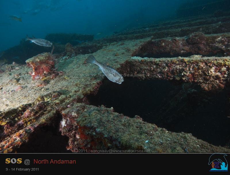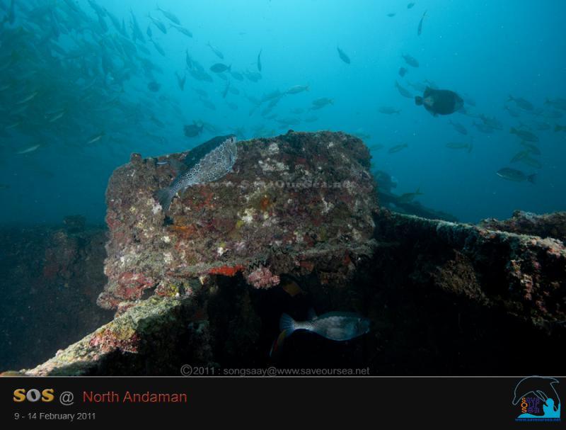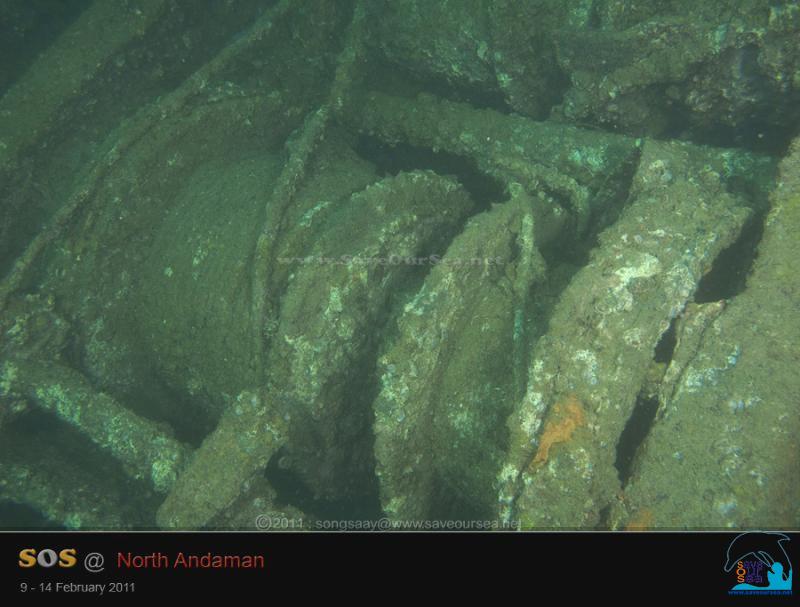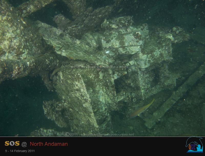 ที่พื้นซึ่งเป็นเหล็กแข็งแรงเช่นกัน เป็นที่อาศัยของปลาไหล Honeycomb Moray Eel....Green Moray....กัลปังหา....ปะการังแข็ง...