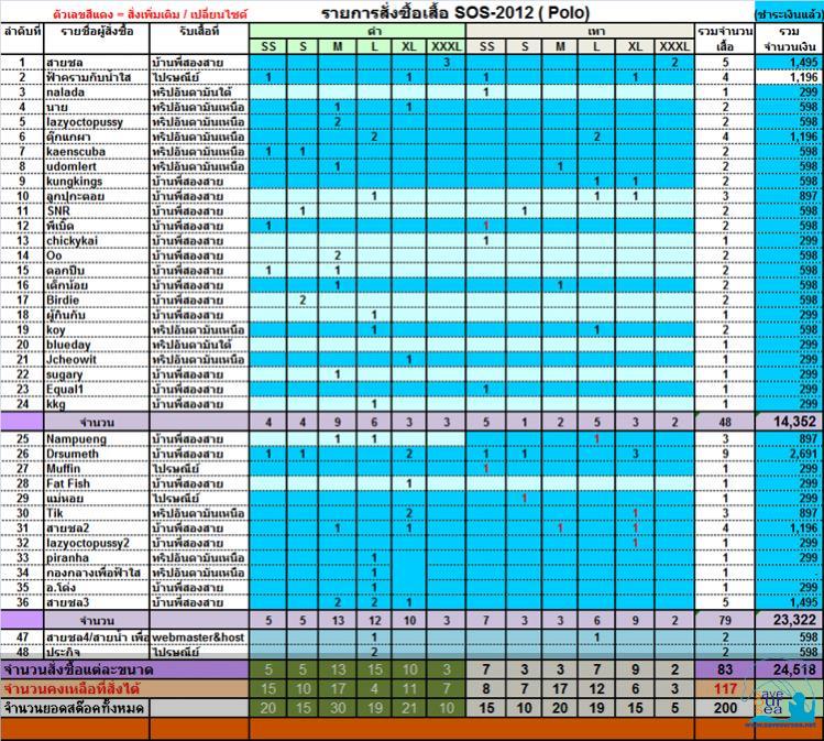 - ออเดอร์และการชำระของพี่สายน้ำ #193 บันทึกเรียบร้อยแล้วค่ะ รวมทั้งของอ.โด่ง วันนี้ คอวี ไซด์ xl สีดำ - ออเดอร์ทริปอันดามันเหนือ จากพี่ตุ๊กแกผา บันทึกเรียบร้อยแล้วค่ะ และได้ส่งต่อที่อยู่ต่อให้พี่สายน้ำเป็นธุระจัดส่งให้ค่ะ ขอบพระคุณค่ะ .... เสื้อยังคงสั่งซื้อได้เรื่อยๆเลยจ้า...... ยกเว้น เสื้อคอวี ไซด์ S สีขาว หมดแล้วนะค่ะ แล้วจะมาอัพเดทให้อีกทีค่ะ แก้ไขครั้งสุดท้ายโดย แมลงปอ : 19-02-2012 เมื่อ 11:01 |