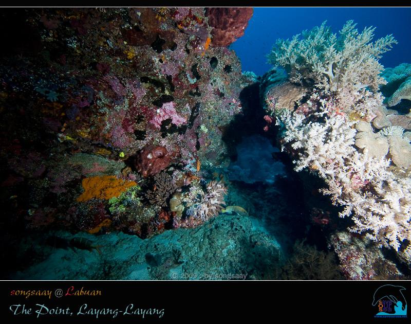 แนวปะการังของ The Point ดูจะสมบูรณ์กว่าเมื่อ 3 ปีก่อน แต่ก็ยังไร้สีสันเช่นเคย เพราะทั้งปะการังแข็งและปะการังอ่อนของที่นี่มีแต่สีตุ่นๆ ดำๆ....ขาวๆ....เทาๆ....