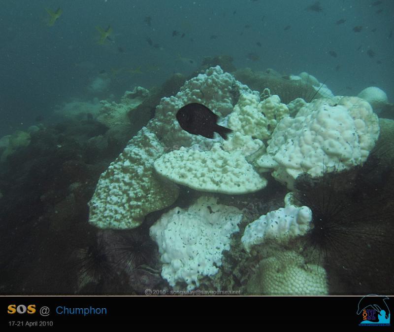 น่าเสียดายจริงๆค่ะที่ปะการังที่เคยสวยงามและสมบูรณ์ของยอดกองหินแห่งนี้ต้องมาสีตก เพราะคุณซู...สาหร่ายซูแซนแทลลี่หนีไปเที่ยว