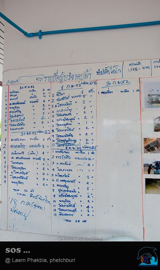 บนกระดาน จะเป็นรายชื่อชาวบ้านที่นำปูไข่มาเข้าธนาคาร