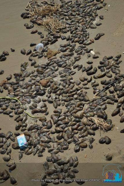ทากทะเลที่ขึ้นมาตายเกลื่อนชายหาด อ่าวประจวบคีรีขันธ์ หน้า อบจ.ประจวบฯ พอจะทราบกันไหมคะว่าเป็นทากพันธุ์อะไร ดูตัวโตและรูปร่างคล้ายลูกปลิงทะเลมากกว่าทากนะคะ