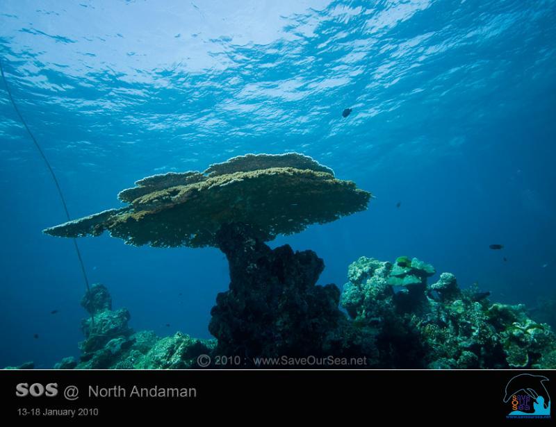 อากาศเริ่มใกล้จะหมดกัน พวกเราจึงทะยอยกันขึ้นสู่ผิวน้ำด้วยการเกาะเชือกทุ่นที่บัดนี้ไม่มีทุ่นผูกอยู่ด้านบนแล้ว ข้างเชือกทุ่นเส้นนี้ มีปะการังโต๊ะที่พิเรนทร์ไปงอกอยู่บนปลายด้านบนของยอดหิน .... ก็ได้แต่ภาวนาว่า ขออย่าให้เจ้าหน้าที่อุทยานฯเอาทุ่นมาผูกที่ด้านบนอีกเลย ไม่อย่างนั้น ปะการังโต๊ะกอนี้คงอายุสั้นเป็นแน่ หลังจากนั้น พวกเราก็ขึ้นเรือเพื่อรับประทานอาหารเช้า และรีบยกพลขึ้นบกที่เกาะ 4 เพื่อไปพบคุณไสว เจ้าหน้าที่อุทยานฯ เนื่องจากเลยเวลาที่นัดไว้มาพอสมควรแล้ว จากการที่พบหอยมือเสือที่ยังมีชีวิตอยู่ถึง 40 - 50 ตัว นับว่ามีปริมาณที่น่าพอใจพอสมควรครับ ส่วนหอยที่เหลืออีก 300 กว่าตัวนั้น คงไปแล้วไปลับไม่กลับมา ซึ่งคาดว่า บางส่วนคงไปเฝ้าพระอินทร์ เนื่องจากอ่อนแอ ตายเองบ้าง ถูกเต่ากินบ้าง คนกินบ้าง เดินไปอยู่ในตู้ปลาบ้าง ฯลฯ อะไรทำนองนี้ครับ
