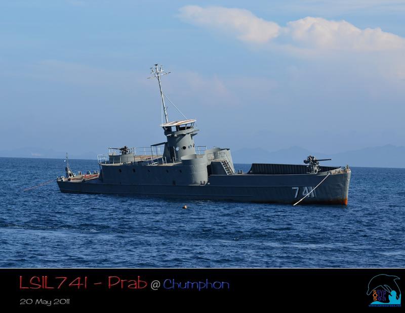 ![]() ภาพจาก www.navy.mi.th.com เรือหลวงปราบ741 เป็นเรือยกพลขึ้นบกขนาดเล็ก มีความยาว 48.46 เมตร สูง 16.90 เมตร (กว้างประมาณ 8 เมตร) สามารถบรรทุกกำลังพลได้ 54 นาย เดิมชื่อเรือ USS LCI (M) - 670 เป็นเรือที่กองทัพสหรัฐสร้างขึ้นเมื่อปีพ.ศ. 2487 ที่รัฐแมซซาชูเสท เคยเข้าร่วมปฏิบัติภารกิจสำคัญ ในช่วงสงครามโลกครั้งที่ 2 ในการยกพลขึ้นบกที่หาดนอร์มังดี ประเทศฝรั่งเศส ระหว่างวันที่ 15 ส.ค.-16 ก.ย. 2487 เมื่อสงครามโลกสิ้นสุดลง สหรัฐอเมริกาได้มอบเรือลำนี้แก่ไทยในปีพ.ศ.2489 และเมื่อวันที่ 20 พฤศจิกายน พ.ศ.2490 ได้เข้าประจำการ และรับพระราชทานชื่อว่า “เรือหลวงปราบ” สังกัดกองเรือยกพลขึ้นบก กองเรือยุทธการ โดยเรือในจำนวนนี้ส่วนหนึ่ง ได้แก่ ร.ล.อ่างทอง, ร.ล.กูด, ร.ล.ไผ่, ร.ล.ปราบ, ร.ล.สัตกูด และเรือระบายพลขนาดใหญ่ชั้น ร.ล.มัตโพน อีก ๖ ลำ รวมเป็น ๑๑ลำ จึงได้ให้เรือดังกล่าว ขึ้นในสังกัดหมวด เรือช่วยรบ โดยมี นาวาเอก ชื้น สนแจ้ง เป็น ผู้บังคับการหมวดเรือในขณะนั้น (ข้อมูลจาก http://www.koryorpor.com/?page_id=113) "ร.ล. ปราบ 741" ได้ถูกปลดประจำการเมื่อวันที่ 9 กุมภาพันธ์ พ.ศ.2549 หลังจากได้รับใช้ชาติเกือบ 60 ปี จากนั้นกองทัพเรือมิได้นำเรือลำนี้มาใช้ประโยชน์อะไรในด้านการรบ แต่ได้นำมาใช้เป็น "เรือครู" เพื่อฝึกกำลังพลของกองทัพเรือ (เช่นเดียวกับเรือกูดที่สองสายได้เคยไปเห็นมาแล้ว ก่อนที่จะนำไปตั้งแท่นใต้ทะเลที่พัทยา) คณะกรรมการโครงการแหล่งเรียนรู้เรือหลวงไทยใต้ท้องทะเล ซึ่งประกอบด้วย ตัวแทนจาก กรมอุทยานแห่งชาติ สัตว์ป่า และพันธุ์พืช...กรมทรัพยากรทางทะเลและชายฝั่ง...กรมประมง...ชมรมดำน้ำจังหวัดชุมพร...บริษัท ปตท.สำรวจและผลิตปิโตรเลียม จำกัด (มหาชน)หรือ ปตท.สผ...และ จังหวัดชุมพร ได้ร่วมประชุมกัน ที่ประชุมได้มีมติขอรับการสนับสนุน "ร.ล. ปราบ 741" มาวางเพื่อให้เป็นแหล่งเรียนรู้เรือหลวงไทยใต้ท้องทะเลชุมพร อีกทั้งยังจะใช้เป็นปะการังเทียม ที่อยู่อาศัยของสัตว์น้ำ และยังเป็นการสร้างแหล่งดำน้ำแห่งใหม่เพื่อเพิ่มความหลากหลายให้กับ แหล่งท่องเที่ยวของอ่าวไทย กองทัพเรือได้ให้ความเห็นชอบตามคำขอของ ปตท.สผ. โดยทางจังหวัดชุมพร เป็นผู้ทำหนังสือถึงผู้บัญชาการทหารเรือ เพื่อขอรับการสนับสนุนเรือรบหลวงดังกล่าวอีกชั้นหนึ่ง หลังจากได้รับอนุมัติจากองทัพเรือแล้ว อดีตเรือหลวงปราบ และเรือหลวงสัตกูด (ที่ทางกองทัพเรือได้มอบให้จังหวัดสุราษฎร์ธานี เพื่อนำไปวางที่ใต้ทะเลเกาะเต่า) ได้ถูกนำไปทำความสะอาดที่กรมอู่ทหารเรือ ในกรุงเทพฯ ภายใต้การควบคุมดูแลของผ.ศ.ดร.ธรณ์ ธำรงนาวาสวัสดิ์ ภาควิชาวิทยาศาสตร์ทางทะเล คณะประมง มหาวิทยาลัยเกษตรศาสตร์ ในระหว่า