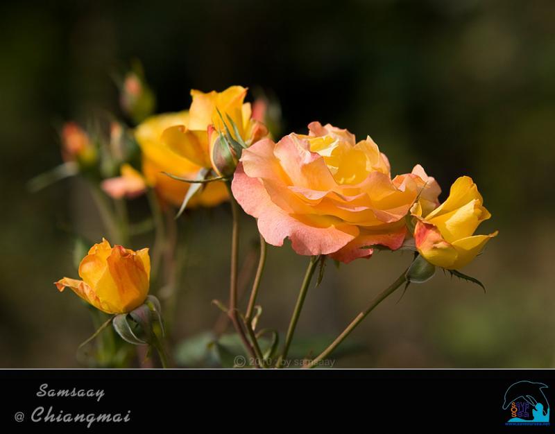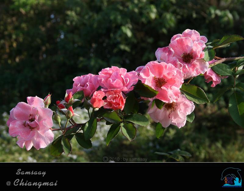 หยาดน้ำค้างบนดอกและใบกุหลาบระเหิดระเหยหายไปกลายเป็นไอน้ำ กุหลาบในสวนงามไปอีกแบบหนึ่ง.... กุหลาบพวงที่สวยงามและสมบูรณ์....