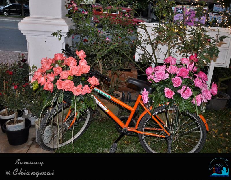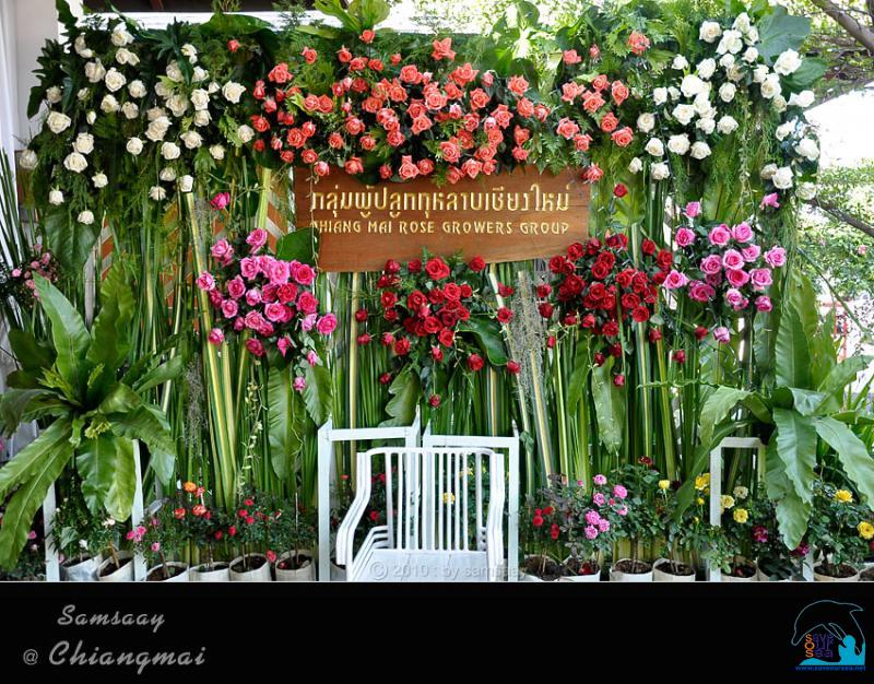 ดอกกุหลาบงามๆละลานตา ถูกนำมาใช้ทั้งก่อนงานเปิด และสำรองไว้เปลี่ยนระหว่างงานดำเนินอยู่นั้นมากมาบหลายหมื่นดอก การถนอมดอกกุหลาบให้อยู่ทนนาน จึงเป็นเรื่องที่ต้องใส่ใจและพิถีพิถันเป็นพิเศษ.... คนจัดดอกกุหลาบปีนี้มีหลายคน งานจึงออกมาสวยและเสร็จได้เร็วกว่าปีที่ผ่านๆมา ส่วนเจ้าพนักงานจากพระตำหนักภูพิงคราชนิเวศน์ ก็มาช่วยงานกันมากหน้าหลายตา เวลาผ่านไปไม่นานงานจัดดอกไม้ในส่วนของพระตำหนักภูพิงคก็สำเร็จเรียบร้อยอย่างสวยงาม....