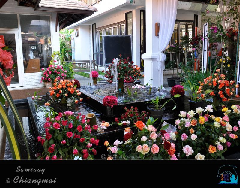 เมื่อออกไปจากตัวอาคารด้านหน้า...ทั้งสองข้างทางเดินเป็นลานน้ำพุที่ถูกประดับประดาด้วยกุหลาบที่ถูกปักลงบนกระบอกไม่ไผ่ลำโต น้ำพุที่ดูธรรมดาๆก็งามขึ้นมาในทันใด...