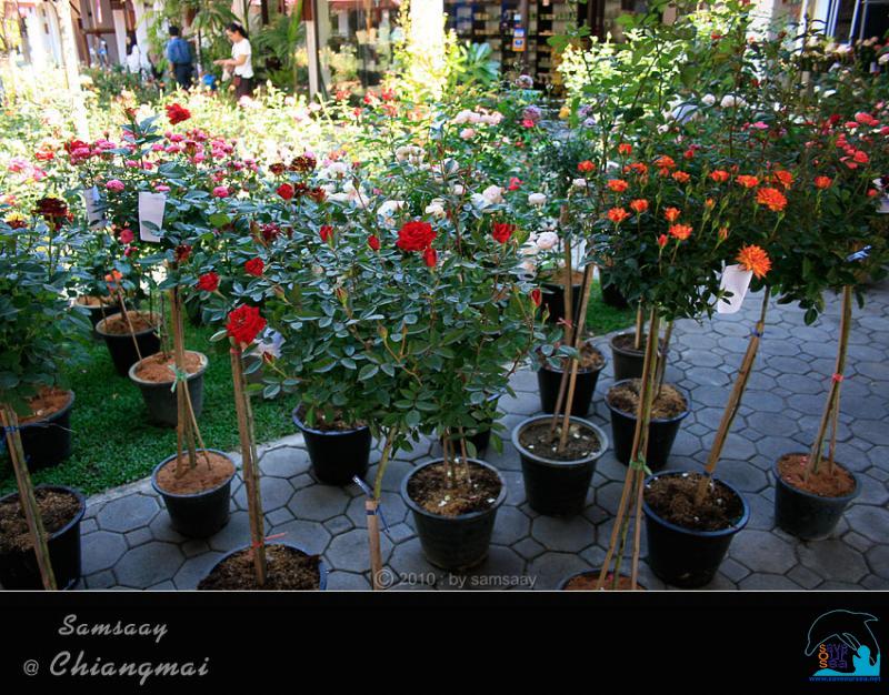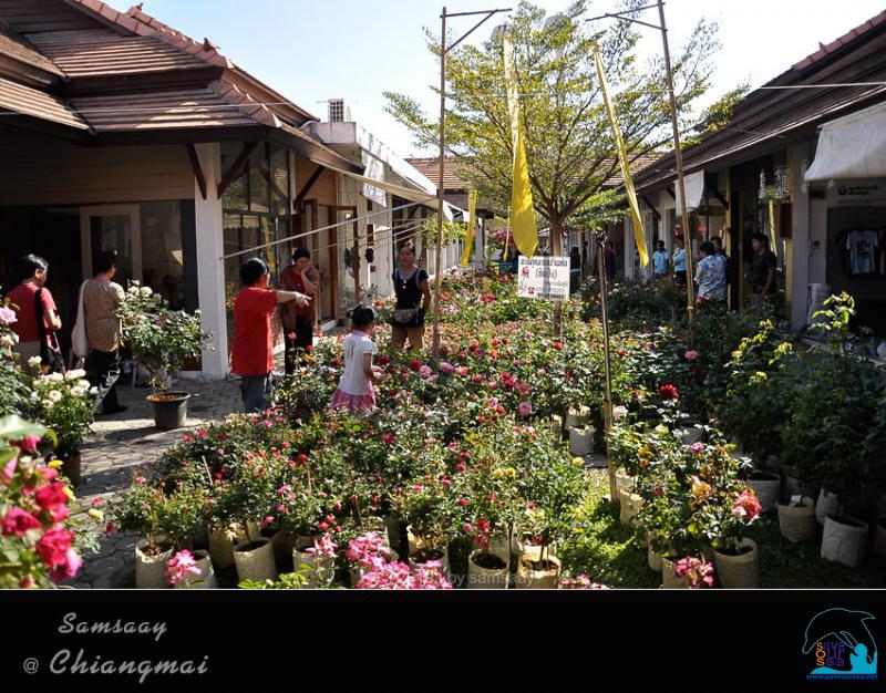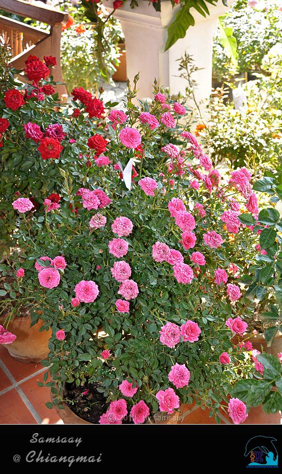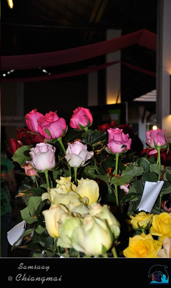 สนามโล่งระหว่างอาคาร กลายเป็นที่ตั้งกุหลาบกระถางที่จะส่งเข้าประกวด และที่ผู้ปลูกนำมาขาย วางแน่นขนัดเต็มไปหมด เหมือนสวนกุหลาบจำลองมี่สวยงามน่าชม...