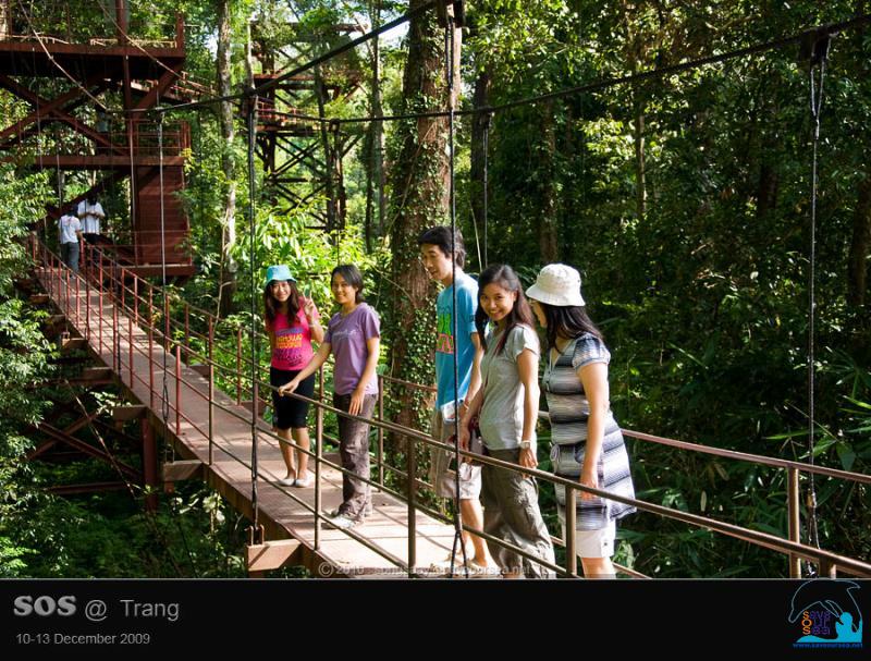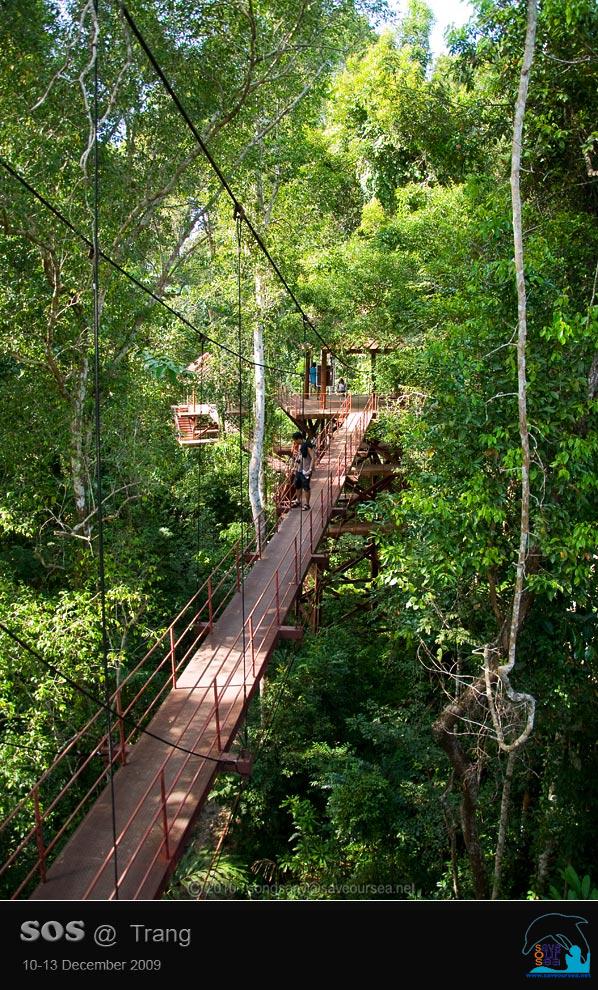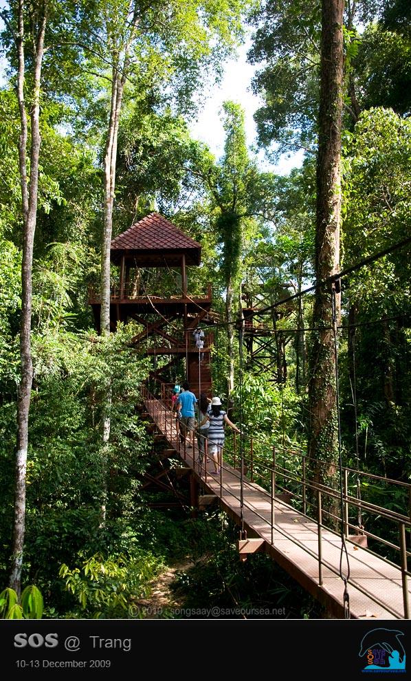 ภายในสวนพฤกษศาสตร์สากลภาคใต้ (ทุ่งค่าย) มี สะพานศึกษาเรือนยอดไม้ (Canopy walkway) ความยาว 175 เมตร มีความสูง 10-18 เมตร มีจำนวนหอคอย 6 หอ รองรับน้ำหนักได้ 200 กิโลกรัม/ตารางเมตร ตั้งอยู่ระหว่างเส้นทางศึกษาธรรมชาติป่าทุ่งค่าย มีระยะทางประมาณ 3 กิโลเมตร ผ่านป่าดิบชื้นและป่าพรุ สร้างเสร็จเมื่อเดือนมกราคม พ.ศ. 2547 ด้วยงบประมาณส่งเสริมและพัฒนาแหล่งท่องเที่ยว