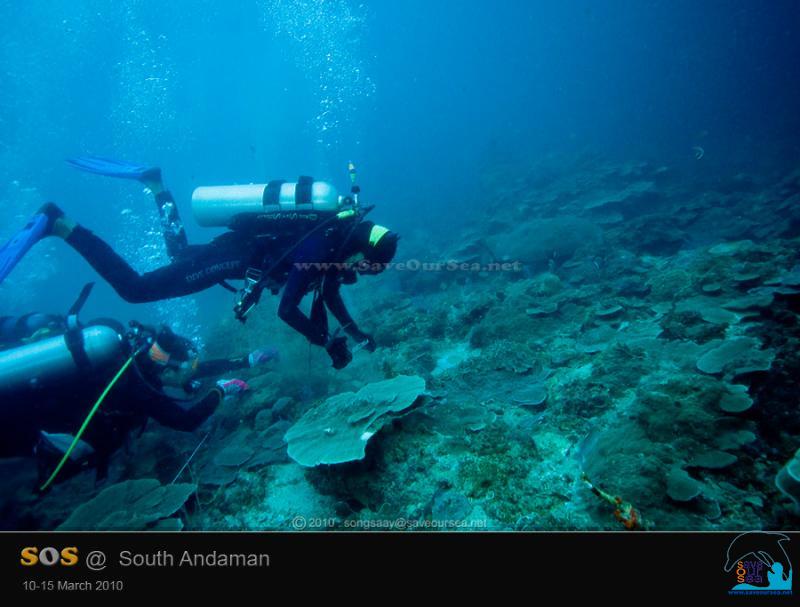 ดูมาตราวัดน้ำขึ้นน้ำลงก่อนลงน้ำบอกว่า น้ำขึ้น ความแรงประมาณ 4 เด ตามนั้นเลยครับ น้ำแรงใช้ได้ ...... แต่พอลงน้ำกันไป แค่สู้กระแสน้ำก็แย่แล้ว การจะสื่อสารถึงกันยิ่งทำได้ลำบาก แต่ดูเหมือนสมาชิก sos ที่ร่วมทริปทุกคน ไม่ว่าจะเก่าหรือใหม่ ต่างรู้ใจกัน แยกกระจายกันออกไปตามจุดต่างๆ ทำงานได้ตามขั้นตอนที่ได้ซักซ้อมกันมาล่วงหน้า