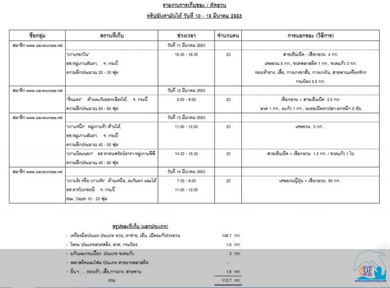 ผมจึงขอสรุปรายงานการเก็บขยะ / เศษอวนของเราทั้ง 4 วัน ไว้ที่ตรงนี้ และรายงานนี้ จะนำเสนอต่อกรมทรัพยากรทางทะเลและชายฝั่ง และ กรมอุทยานฯ ต่อไปครับ