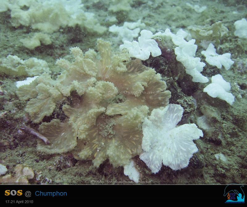 ไม่นานนัก ก็ได้พบปะการังหนังสมใจ ... จำนวนประชากรของปะการังหนังมีจำนวนมากขึ้น แต่น่าเศร้าใจที่ได้พบว่า เกือบ 100 % ของปะการังหนังที่ได้พบ มีอาการฟอกขาวกันแล้ว