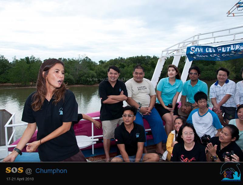 แล้วเรือก็วิ่งกลับเข้าฝั่ง ..... แต่ก่อนจะถึงท่าเรือ ต้องมีการกล่าวอะไรกันสักเล็กน้อยก่อนที่จะแยกกันไป งานนี้ น้อง snr ได้รับมอบหมายให้กล่าวสรุปการทำงาน .... ก็เป็นธรรมดาที่ต้องมีท่าทางประกอบไปด้วย ตามประสาสาวไฮเปอร์