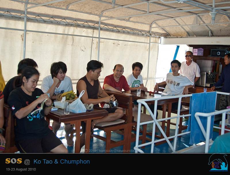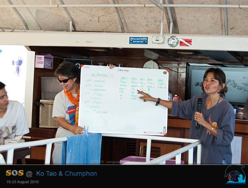 คุณเสรี เจ้าของเรือโชคศุลี ทำการสรุปเรื่องเรือ ส่วนน้องติ่ง SNR สรุปเรื่องแผนการดำน้ำ โดยมีน้องกบ Angel Frog น้องติ๊ก และน้องติ่ง (ชาย) ช่วยสรุปเรื่องการดำน้ำอย่างปลอดภัย....