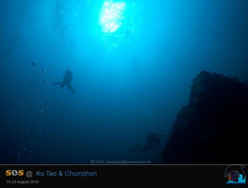 กว่าเราจะลงดำน้ำกัน....มีเรือที่ใช้ดำน้ำทั้งจากเกาะเต่าและชุมพร อยู่เหนือกองหินชุมพรรวมแล้ว 11 ลำ สภาพใต้น้ำที่กองหินชุมพรในวันนั้นจึงมีสภาพเหมือนกับศูนย์การค้า ที่มีนักดำน้ำทั้งไทยทั้งเทศว่ายกันว่อนไปหมด...