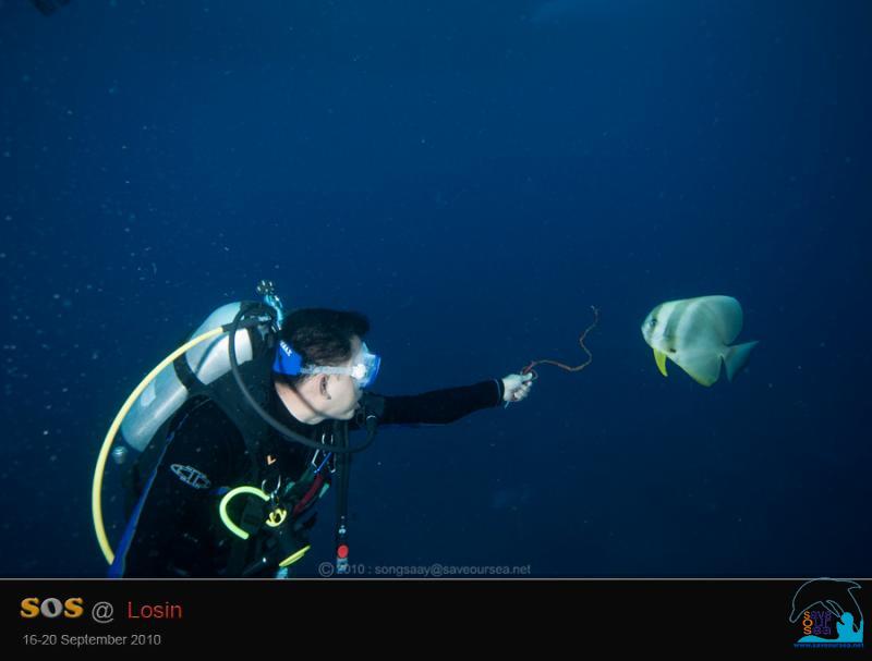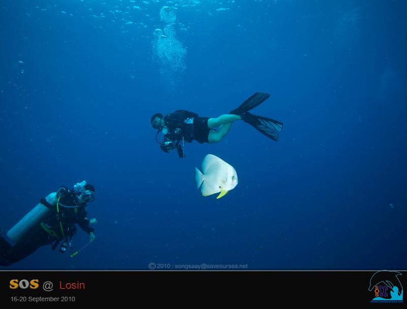ปลาค้างคาว หรือ ปลาหูช้าง (Batfish) ฝูงใหญ่ ที่ค่อนข้างเชื่อง กล้าที่จะเข้ามาใกล้นักดำน้ำ บางตัวก็เข้า Cleaning Station อยู่อย่างเพลิดเพลิน