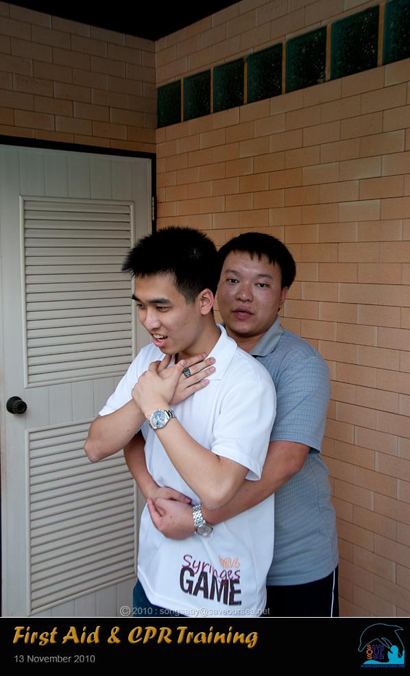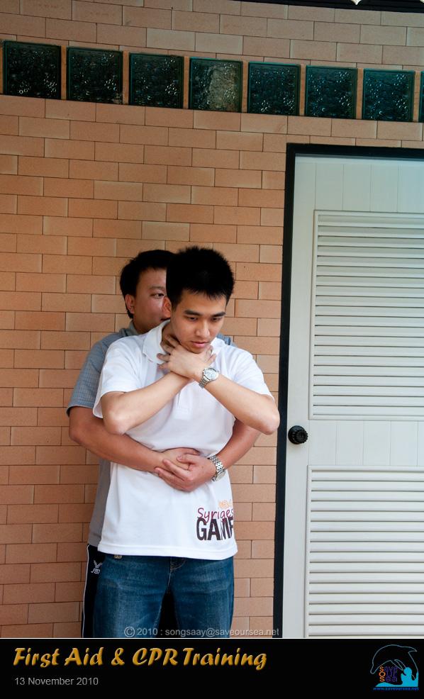 อยากสุดท้ายที่ฝึกคือ การช่วยคนป่วยที่กำลังสำลักเพราะมีเศษอาหารหรือวัสดุอย่างอื่นติดคอ