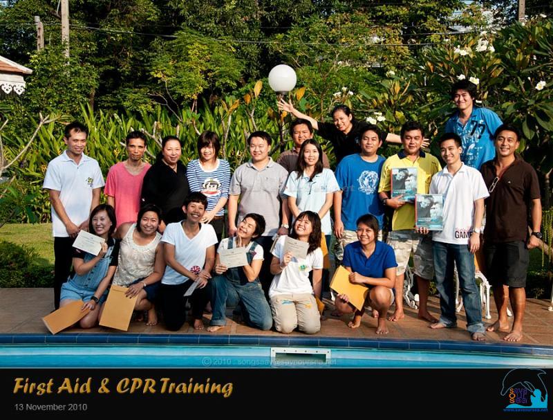 จริงๆแล้ว เนื้อหาการบรรยายในห้องเรียน และการอธิบายประกอบการปฏิบัติที่ครบถ้วนไปด้วยเหตุและผล ยังมีอีกมากมายที่ผมไม่ได้นำมาเล่าให้ฟัง สมาชิกท่านอื่นๆที่อยากได้ความรู้ที่สามารถนำไปใช้กับชีวิตจริงได้ ซึ่งไม่จำเป็นจะต้องเป็นเฉพาะการดำน้ำเท่านั้น สามารถแสดงความจำนงไว้ได้ ถ้ามีสมาชิกให้ความสนใจมากพอ sos อาจจะเปิดอบรมรุ่น 3 และรุ่นต่อๆไปอีกตามช่วงเวลาที่เหมาะสมครับ สำหรับสมาชิกที่มาเข้าอบรมรุ่นแรกนี้ ขอให้จดจำและหมั่นทบทวนสิ่งที่ได้ฝึกไปครั้งนี้ให้ดี สักวันหนึ่ง ท่านอาจจะนำความรู้เหล่านี้ไปใช้ช่วยชีวิตผู้อื่นได้เมื่อท่านได้ประสบกับเหตุการณ์จริงๆเข้า สำหรับรุ่นที่ 2 ที่จะเข้ารับการอบรมในวันเสาร์ที่ 20 พฤศจิกายนนี้ ขอให้ตรงเวลาสักนิด ..... เวลา 9.00 น.นั้นคือ เวลาเริ่มการบรรยายนะครับ จึงควรมาถึงบ้านสองสายก่อน 9.00 น.ครับผม .... แล้วพบกัน