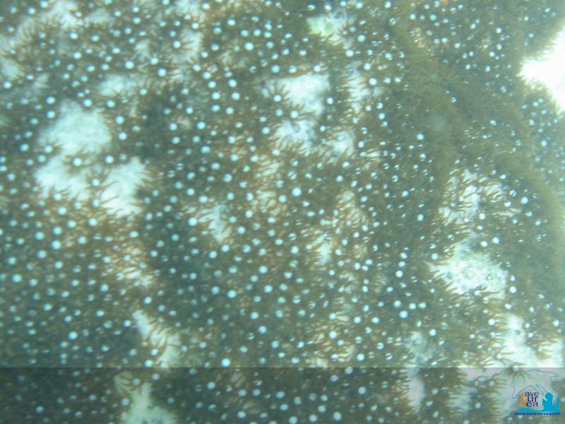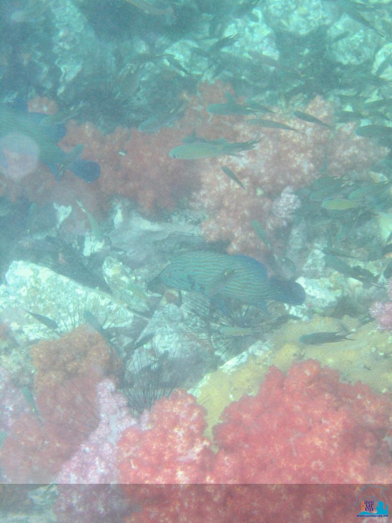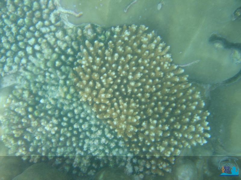 คลื่นค่อนข้างสูงและน้ำขุ่นประการังเสียหายเล็กน้อยไม่ถึง10%เกือบทั้งหมดก็คือปะการังเขากวางตามระเบียบ