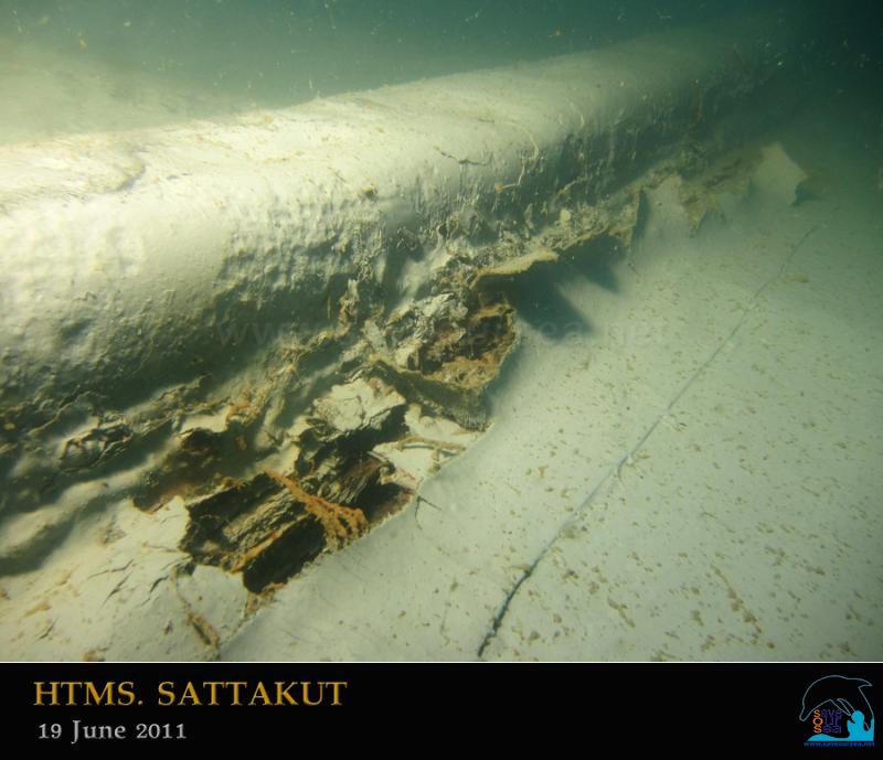 คุณสายชลวัดความลึกที่พื้นทรายได้ 98 ฟุต .... ที่หอบังคับการประมาณ 90 ฟุต พอจะเริ่มลอยตัวขึ้นเหนือตัวเรือ เพื่อเกาะเชือกทุ่นขึ้นสู่ผิวน้ำ มองเห็นน้ำเป็น 2 layers ได้อย่างชัดเจน .... ใกล้ตัวเรือจะเป็นสีเขียวปนน้ำตาล พ้นขึ้นมาจะเป็นสีฟ้า เท่าที่ทราบ ในวันนี้ มีการหารือกันในกลุ่มคนเกาะเต่า ผลออกมาว่า จะไม่ยอมให้เรือหลวงสัตกูตอยู่ในสภาพนี้ จะช่วยกันกู้ให้กลับขึ้นมาตั้งตรงในเร็ววันนี้ เมื่อถึงเวลานั้น สองสายจะกลับมาเยี่ยมเรือหลวงสัตกูตอีกครั้ง
