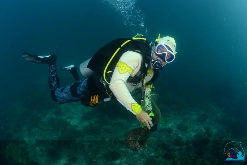 Dive # 10 Site # กองหินตาชัย Max deth # 28 เมตร ...... สภาพ... รอบนี้ลงไปหลบกระแสน้ำแถวหลังกองหิน ค่อยสบายหน่อย.... ขยะที่เก็บได้ ก็เป็นเศษเชือกปากอวนเก่า ที่พันปะการังอยู่ จำนวนไม่มาก... ...... แมนต้าเรย์ มาตอนใกล้ขึ้นพอดี...แหมๆๆ!!!! ตอนนั้นกระแสน้ำแรงมาก....แต่ละคนปลิวๆๆๆ.... ต้องเอา Hook เกี่ยวแนวหินเพื่อพยุงตัว... ..... เราตีเข้าหาเชือกทุ่นเรือเพื่อขึ้นผิวน้ำ ตอน safety stop 5 เมตร ขนาดเกาะเชือกทุ่น ยังโดนกระแสน้ำแทง จนร่างแทบฉีก.... ...... |