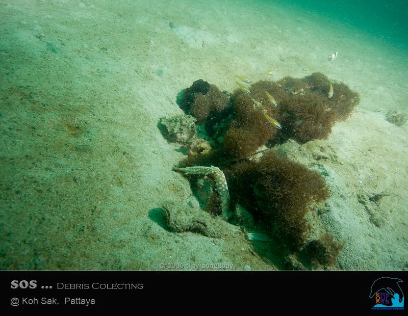 เห็นชัดๆว่าเป็นปูม้า.....แต่ว่าแยกเป็นชิ้นๆในกอปะการัง เป็นปูม้าตามธรรมชาติ หรือปูที่ถูกโยนทิ้งมาจากเรือก็ไม่อาจจะทราบได้ค่ะ...