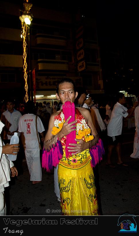 เสียงของประทัดที่ดังรัวสนั่นหวั่นไหว แสงไฟจากการระเบิดของประทัดสว่างวาบเป็นช่วงๆ และภาพของคนหามเกี้ยวกระโดดโลดเต้นไปมาตามเสียงและแรงของประทัด ..... สำหรับแขกอย่างสองสาย ช่างเป็นภาพที่สวยงามเสียเหลือเกิน