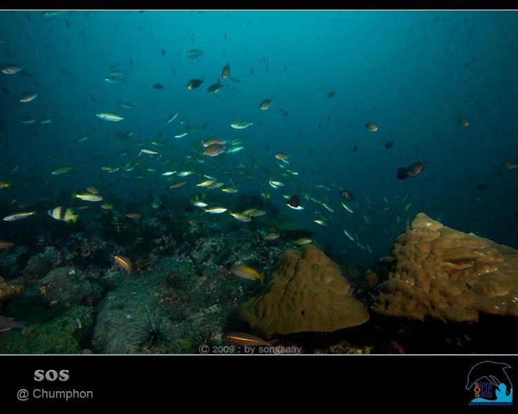 เมื่อขึ้นมาถึงผิวน้ำ....คลื่นเหนือกองหินสามเหลี่ยมสูงเกือบเมตร ลมที่แรงขึ้นทำให้มีแนวโน้มว่าคลื่นจะสูงขึ้นไปอีก