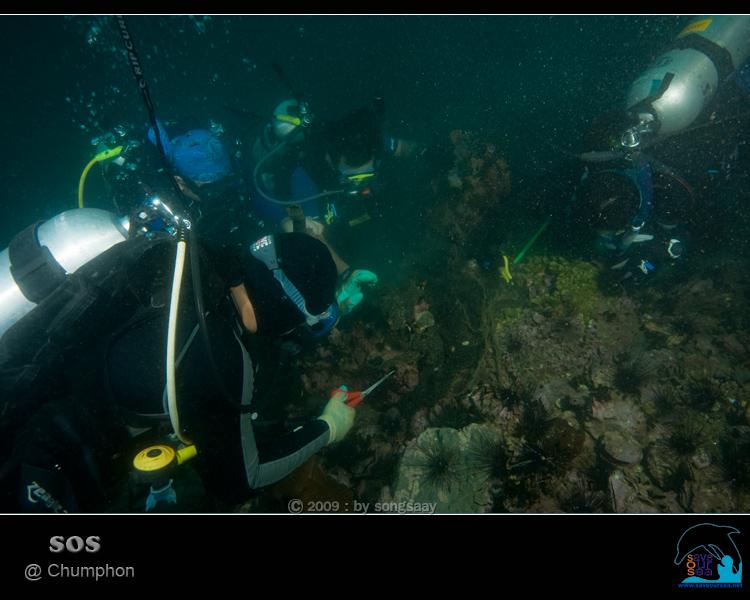 ยังมีเชือกปากอวนอีกหลายเส้นให้ตัด.........แต่คนทำงานทั้งเหนื่อย ทั้งล้า อากาศใกล้จะหมด และหมดหรือใกล้จะหมดเวลาดำน้ำ จึงจำเป็นต้องขึ้นสู่ผิวน้ำ เราตั้งใจจะลงดำน้ำทำงานที่นี่กันอีกไดฟ์ ซึ่งถือเป็นกรณีพิเศษที่จะดำน้ำทำงานกัน 4 ไดฟ์ต่อวัน อืมมมม....จะไหวไหมคะนี่...