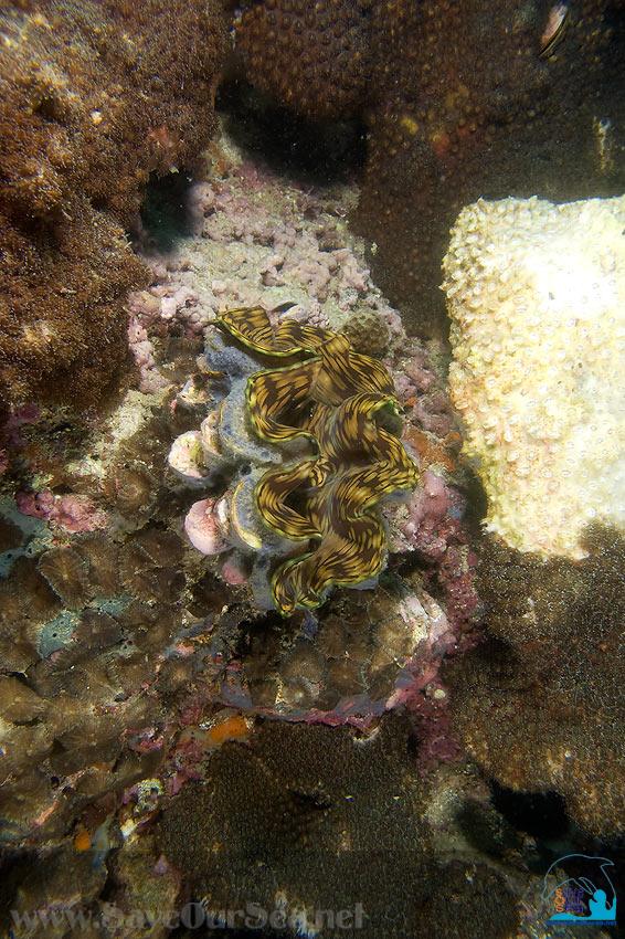 ก่อนจะขึ้นผิวน้ำ ได้พบหอยมือเสือขนาดหนึ่งคืบกับอีกนิดหน่อย น่าจะเป็นทายาทของหอยที่เราปล่อยไว้ในละแวกนี้เมื่อหลายๆปีก่อน