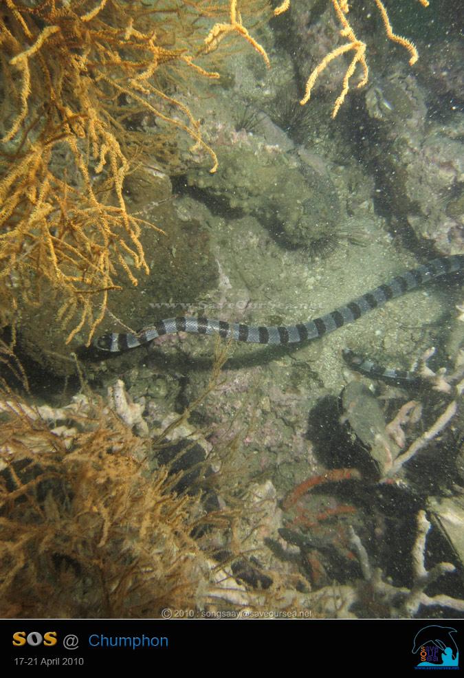 งูทะเลลายปล้องตัวใหญ่ ว่ายเหมือนมึนๆงงๆไปตามกอปะการังดำ...