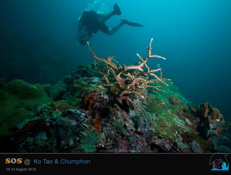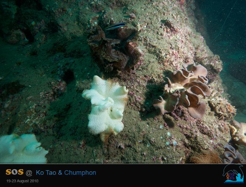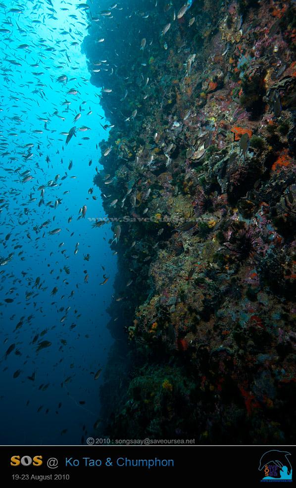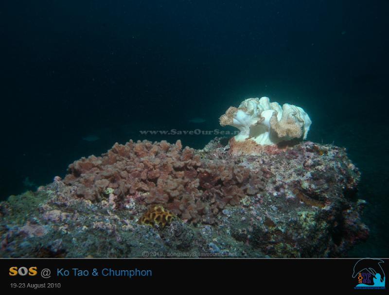 เกาะง่ามใหญ่ ไดฟ์สุดท้าย เราตั้งเป้าหมายไว้ที่เกาะหลักง่าม แต่ดินฟ้าอากาศไม่เป็นใจ ทำให้ต้องมาจอดเรือบังลมที่เกาะง่ามใหญ่ และต้องลงดำกันที่นี่อีกครั้งหนึ่ง เหมือนกับทริปชุมพรเมื่อเดือนมิถุนายนไม่มีผิด ก่อนที่พายุเกย์จะพัดเข้าถล่มชุมพรเมื่อเดือนพฤศจิกายน 2532 ประมาณ 20 กว่าปีที่แล้วนั้น เกาะง่ามใหญ่จะหนาแน่นไปด้วยปะการังหนัง แต่เมื่อพายุเกย์ผ่านไป ความรุนแรงของคลื่นและกระแสน้ำได้พัดพาเอาปะการังหนัังเกือบทั้งหมดไปจากเกาะง่ามใหญ่ เหลือไว้เพียงโขดหินโล้นๆเท่านั้น เวลาผ่านไป 20 ปี ปะการังหนังกลับมาเกาะตามโขดหินอีกครั้งหนึ่ง ถึงจะไม่หนาแน่นเหมือนเดิมก็ตาม