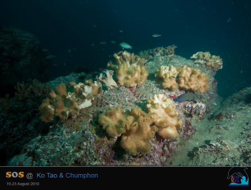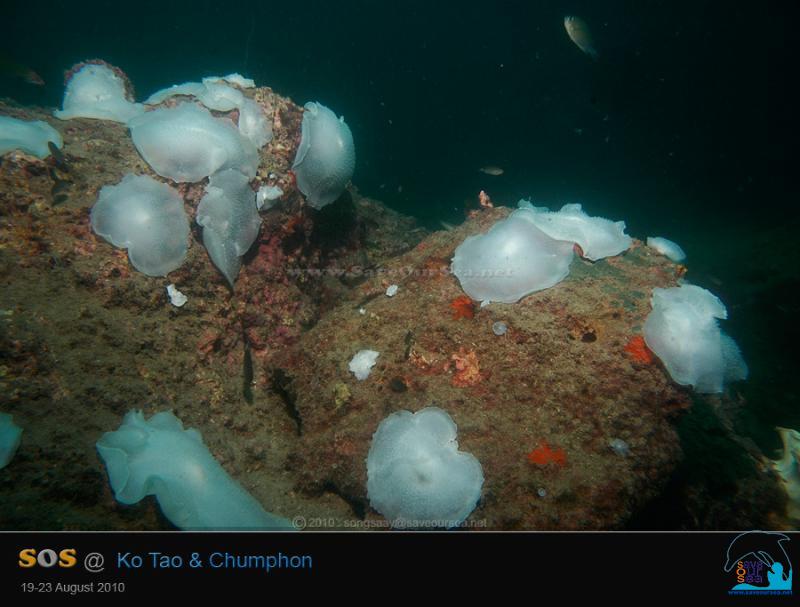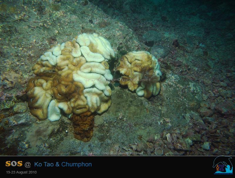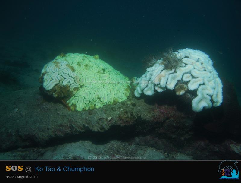 แต่ที่ออกอาการหนักที่สุด เห็นจะเป็นปะการังโขด .... ทดลองสัมผัสดู .... ถ้าสีออกขาวๆ ยังนิ่ม คือ ยังไม่ตาย แต่ถ้าออกสีเหลืองๆ จะแข็งตัวแล้ว คือ กำลังตาย