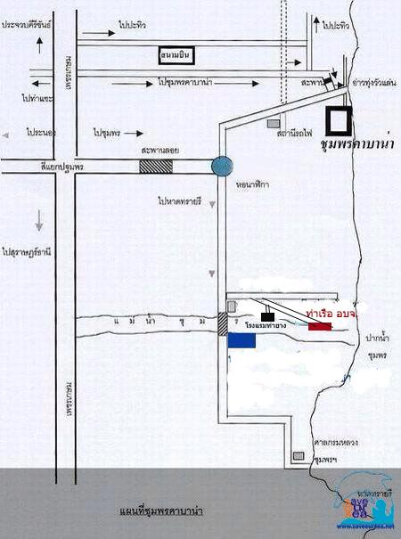 พี่น้องครับ เที่ยวนี้เปลี่ยนท่าเรือนะครับ ... อยู่ท่ายาง แต่จะต้องเลี้ยวซ้ายก่อนที่จะข้ามสะพานไปท่าเรือที่เราเคยลงเรือ ... สองสายจะไปกราบกรมหลวงชุมพร และจะเอาของไปทิ้งไว้บนเรือ ช่วงบ่ายนี้ แล้วจะกลับมาอธิบายรายละเอียดให้ทราบนะครับ