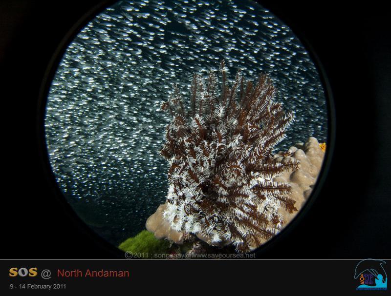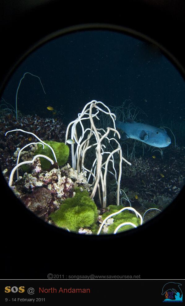 กองหินที่อยู่ติดแนวปะการังชายฝั่ง มีปะการังแส้สีขาวขึ้นอยู่เป็นดง....สวยแปลกตาไปอีกแบบหนึ่ง...
