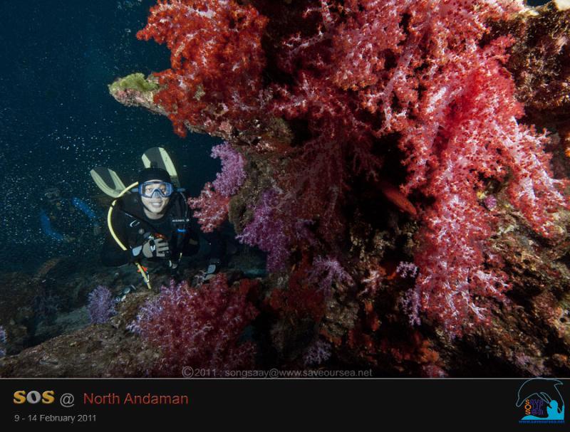 ปะการังอ่อนสีแดงเพลิง แซมด้วยสีชมพูอ่อน....