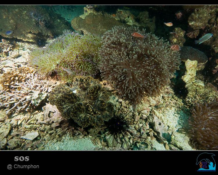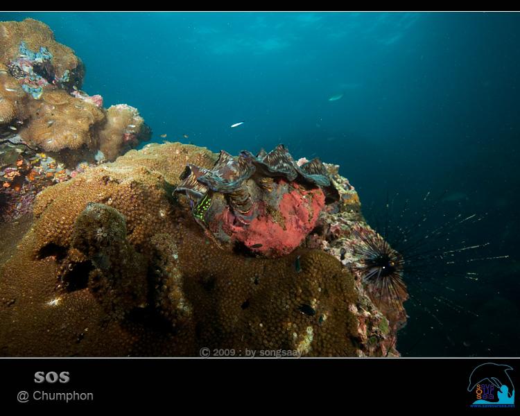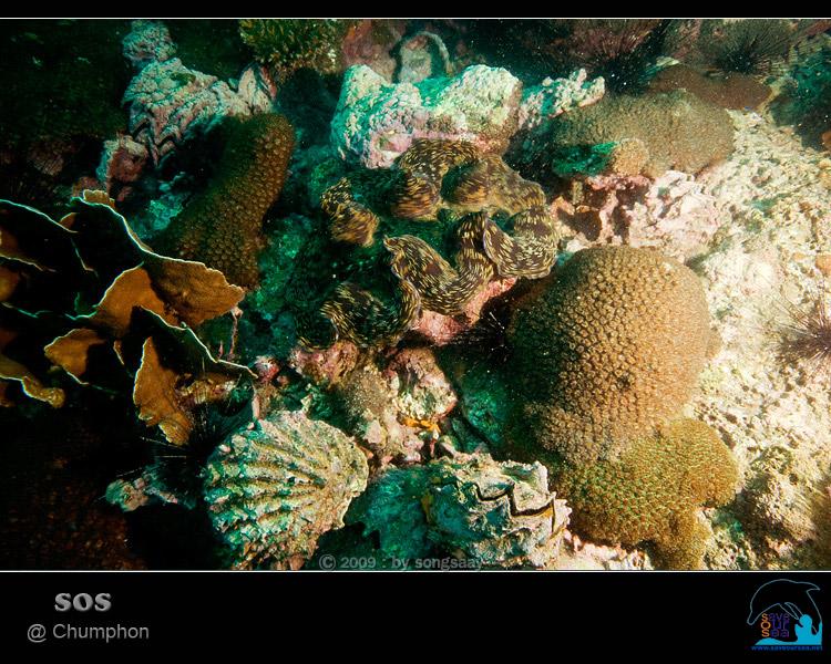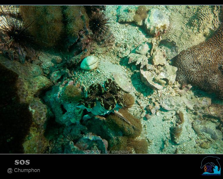 เราได้พบหอยมือเสือหลายตัวที่เคยถูกนำมาปล่อยที่นี่เมื่อหลายปีก่อน....ซึ่งบัดนี้ตัวโตเกือบฟุต