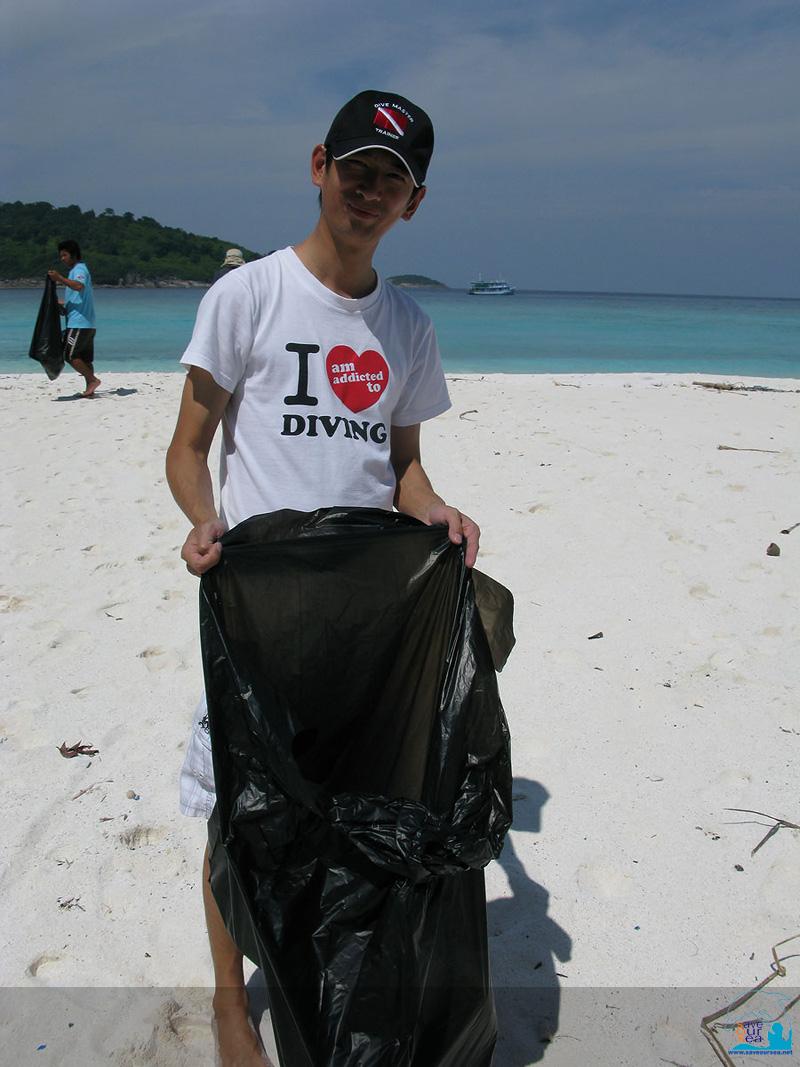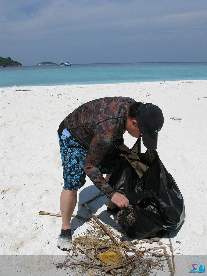 ต่อด้วยการเก็บขยะริมหาดที่เต่าใช้วางไข่