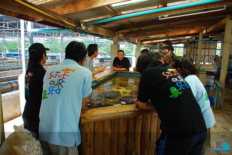 หลังจากเปิดโลกทัศน์ชายแดนเสร็จ เรากลับมาที่ศูนย์ฯเพื่อเริ่มทำงานกับน้องหอย พระเอกนางเอกของทริปนี้ พี่แม่หอยพาพวกเราไปที่โรงเพาะ และน้องตั้วก็เริ่มการบรรยายเบื้องต้นเกี่ยวกับหอยมือเสือให้เราฟัง หลังจากนั้นก็มีการแนะนำวิธีการทำความสะอาดทั้งบ่อหอยและการขัดหอยมือเสือโดยน้องตั้ว น้องรัก น้องจี๊ด และทีมงานอีกหลายคน