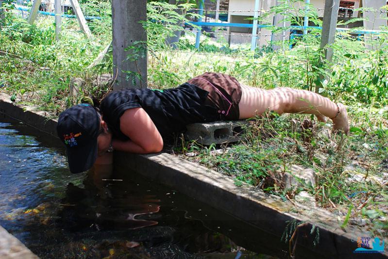 บ่อล่างสุดที่เป็นส่วนของทางระบายน้ำนั้นดูท่าจะเป็นจุดที่ทำงานยากที่สุด สมาชิกถึงขั้นล้มตัวลงนอนตัวแนบพื้นเลยทีเดียว