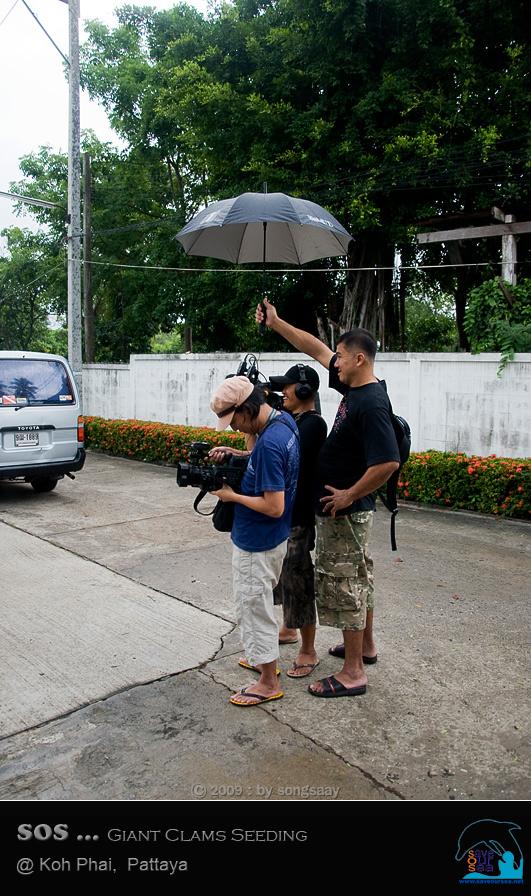 ฝนตกลงมาปรอยๆ....ทีมงานถ่ายทำของ "เจาะใจ" นำโดยน้องโก้ Producer หนุ่มผมยาว ต้องกางร่มทำงานกัน....