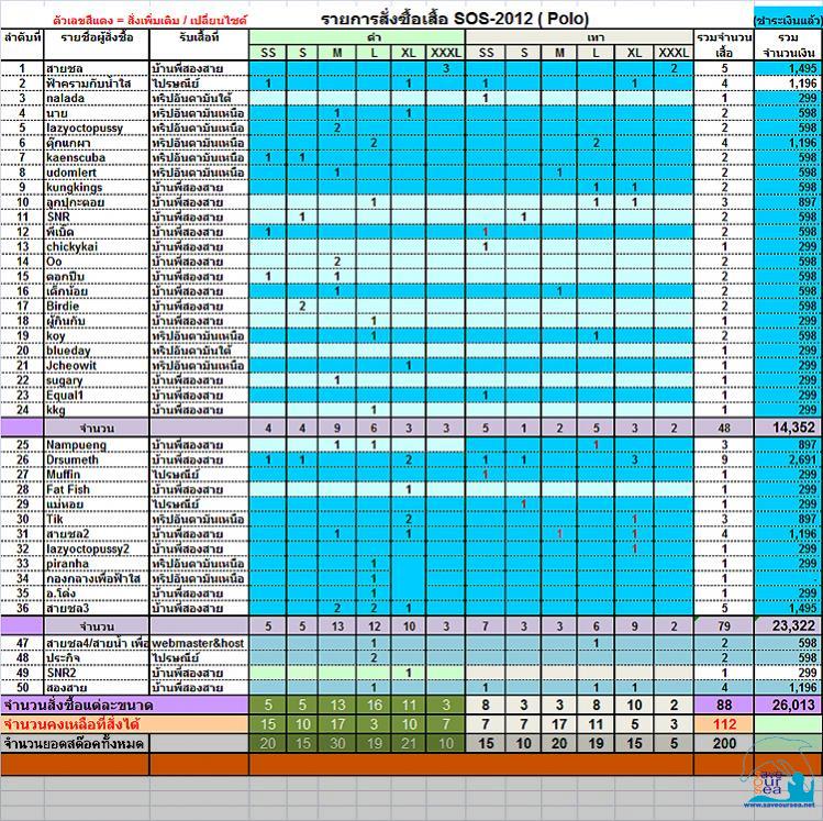 ตั้งแต่เปิด sos มาได้ 9 ปี...เราทำเสื้อไปหลายรุ่นเลยค่ะน้องโป๋...ระยะหลังที่มีภาพสวยๆนี่ เป็นฝีมือของน้องเบิ้ดทั้งนั้น ถ้าน้องโป๋จะทำเสื้อ ลองติดต่อน้องเบิ้ดได้เลยค่ะ ฟังจากคำพูดของน้องโป๋ แสดงว่าได้ลงภาพน้องโป๋ใส่เสื้อให้เราชมด้วย แต่ภาพไม่ขึ้นน่ะค่ะ อยากชมว่าเป็นเสื้อรุ่นไหน และหล่อแต่ไหนค่ะ...