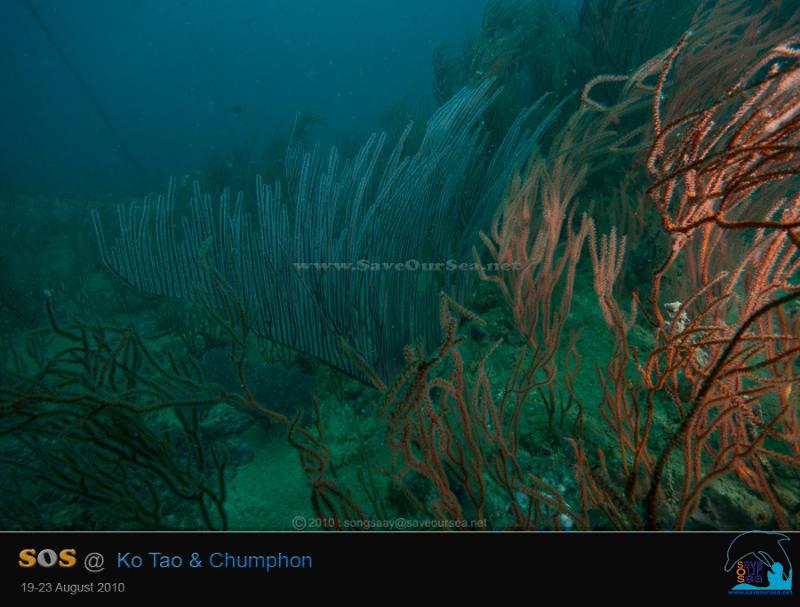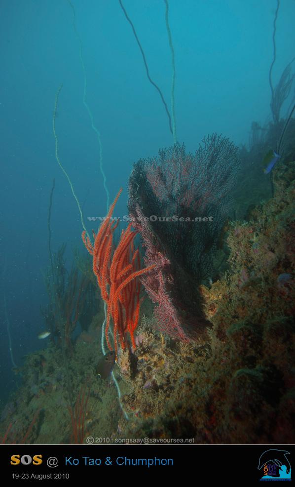 กัลปังหาพัดสีสดใสก็หาดูได้ที่นี่.... เสียดาย...ก่อนหน้านี้ ตะกอนขาวๆคงมีมากมาย ทำให้จับกัลปังหาจนหมองไปมาก...