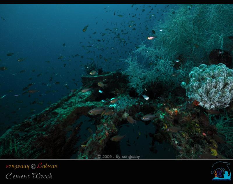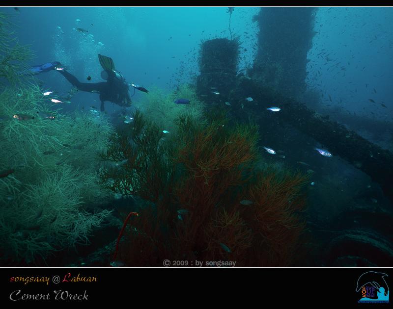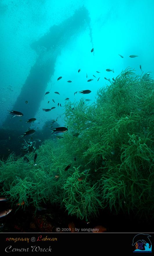 น้ำทะเลรอบๆเรือจม Cement แม้จะใสแต่มีสีเขียวไม่เหมือนที่เรือ Blue Water ที่น้ำมีสีฟ้าใส....