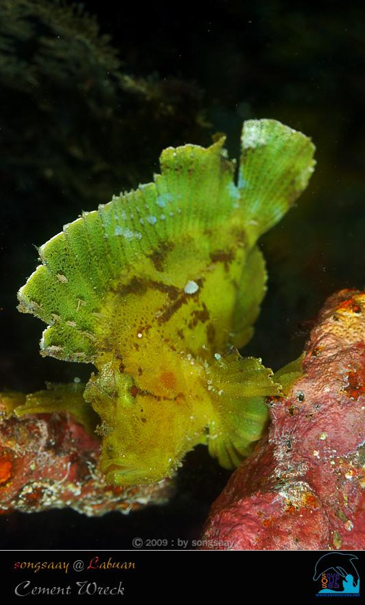 บนกว้านตัวหนึ่ง มี ปลาใบไม้ (Leaf Fish) สีเหลืองน่ารัก ยืนกางครีบที่เหมือนเท้าลอยหน้าสู้กล้องอยู่....