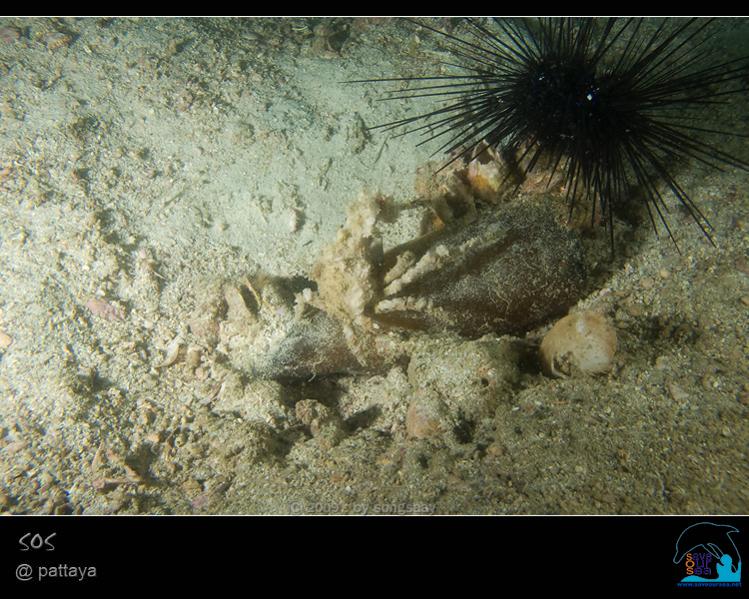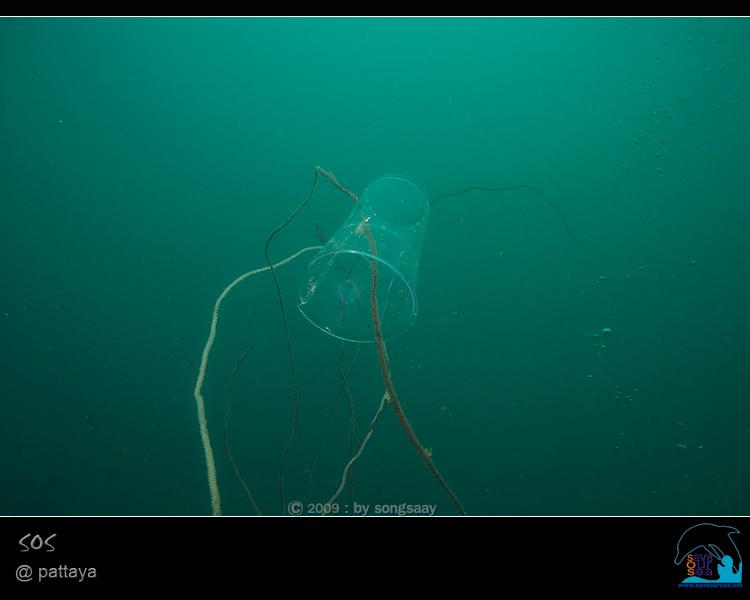 อ๋อ .... เข้าใจแล้ว ฝรั่งคงเสียบแก้วพลาสติคใบนี้เอาไว้เป็นหมายบอกให้รู้ว่ามี Xeno Crab อยู่ตรงนี้ ..... ช่วยไม่ได้เก็บแล้วเก็บเลย ก็ใครใช้ให้เอาพวก Junk มาทำหมายล่ะ อย่างอื่นมีตั้งเยอะแยะ อย่างเปลือกหอยแตก ฯลฯ