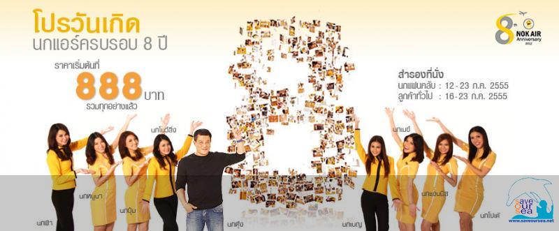 เงื่อนไขและข้อกำหนด สำหรับ Julys Promotion ของนกแอร์ ราคาพิเศษ 888 บาทต่อเที่ยวบินสำหรับ 1ท่าน (รวมทุกอย่างแล้ว) สำหรับเส้นทาง พิษณุโลก อุดรธานี อุบลราชธานี และ เชียงใหม่-แม่สอด ราคาพิเศษ 1,088 บาทต่อเที่ยวบินสำหรับ 1 ท่าน (รวมทุกอย่างแล้ว) สำหรับเส้นทางเชียงใหม่ เชียงราย นครพนม สกลนคร หาดใหญ่ ภูเก็ต นครศรีธรรมราช ตรัง สุราษฎร์ธานี เชียงใหม่-แม่ฮ่องสอน เชียงใหม่-อุดรธานี และ น่าน ราคาพิเศษนี้ ยกเว้น เกาะสมุย เกาะพงัน เกาะลันตา เกาะหลีเป๊ะ เกาะมุก เกาะไหง เกาะกระดาน เกาะเหลาเหลียง เกาะพีพี เกาะลังกาวี เวียงจันท์ มุกดาหาร และบางเส้นทางที่มีเที่ยวบินร่วมซึ่งทำการบินโดยบริษัทสยาม เจนเนอรัล เอวิเอชั่น จำกัด (สายการบินนกมินิ) สมาชิกนกแฟนคลับสามารถสำรองที่นั่งผ่าน www.nokfanclub.com ระหว่างวันที่ 12 23 กรกฎาคม 2555 ลูกค้าทั่วไปสามารถสำรองที่นั่งผ่าน www.nokair.com ระหว่างวันที่ 16 23 กรกฎาคม 2555 สามารถเดินทางได้ตั้งแต่วันที่ 19 กรกฎาคม 30 พฤศจิกายน 2555 สำรองที่นั่งก่อนเดินทางอย่างน้อย 7 วัน ราคาพิเศษนี้เฉพาะ Nok Economy เท่านั้น จำนวนที่นั่งมีจำกัดในแต่ละเที่ยวบิน และอาจไม่มีให้บริการในบางเที่ยวบิน เมื่อทำการชำระเงินแล้ว ไม่สามารถขอคืนได้ไม่ว่าในกรณีใดๆ ราคาโปรโมชั่นนี้ไม่สามารถใช้ร่วมกับโปรโมชั่นอื่นๆของทางนกแอร์ๆได้ การเปลี่ยนแปลงเที่ยวบิน และกำหนดการเดินทาง ต้องทำล่วงหน้าไม่น้อยกว่า 1 วันก่อนกำหนดการเดินทางเดิมผ่านทาง Call Center 1318 และต้องชำระค่าธรรมเนียมการเปลี่ยนแปลง พร้อมทั้งเงินส่วนต่างค่าโดยสารที่เพิ่มขึ้น โดยบัตรเครดิตเท่านั้น ทั้งนี้นกแอร์สงวนสิทธิ์ไม่คืนเงินที่ชำระแล้วในกรณีที่ส่วนต่างค่าโดยสารลดลง สำหรับตั๋วโดยสารราคาปกติ สามารถสำรองที่นั่งและชำระเงินได้ตามช่องทางปกติ เงื่อนไขอื่นๆให้บังคับตามเงื่อนไขและข้อกำหนดมาตรฐานของนกแอร์ ทางสายการบินขอสงวนสิทธิในการเปลี่ยนแปลงเงื่อนไขโดยมิต้องแจ้งให้ทราบล่วงหน้า |